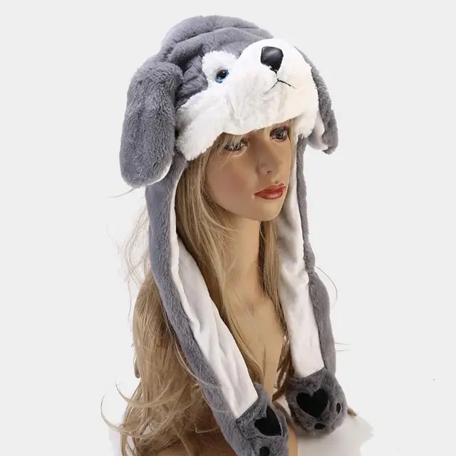 Milutka 2 w 1 szara czapka Husky połączona z szalikiem.