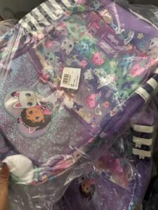 Solidny różowo-tęczowy brokatowy plecak z uszkami Koci Domek Gabi dla dziewczynki. Ozdobiony aplikacja z Gabi i kotem.