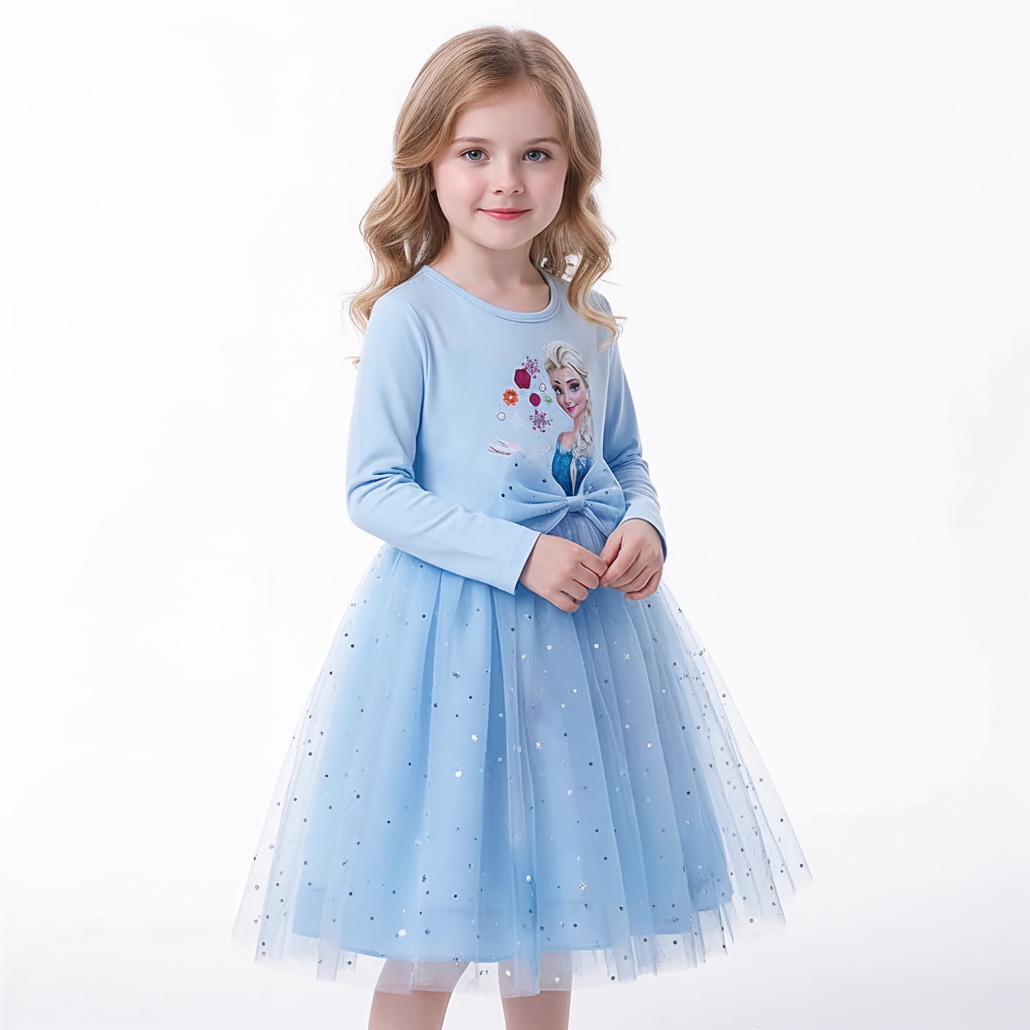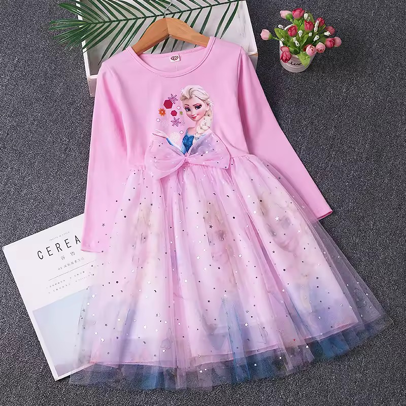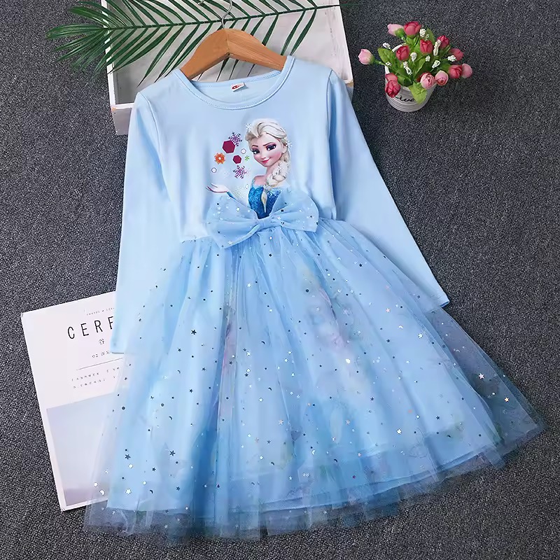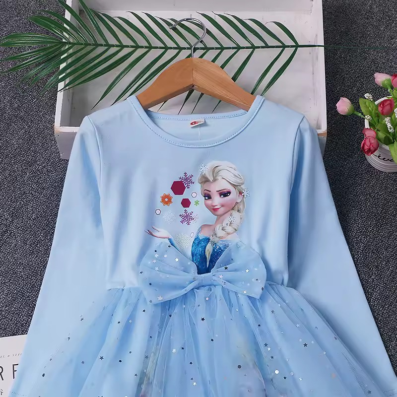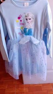 Urocza sukienka z motywem z filmu Frozen / Kraina Lodu. Nadruk z Elsą.