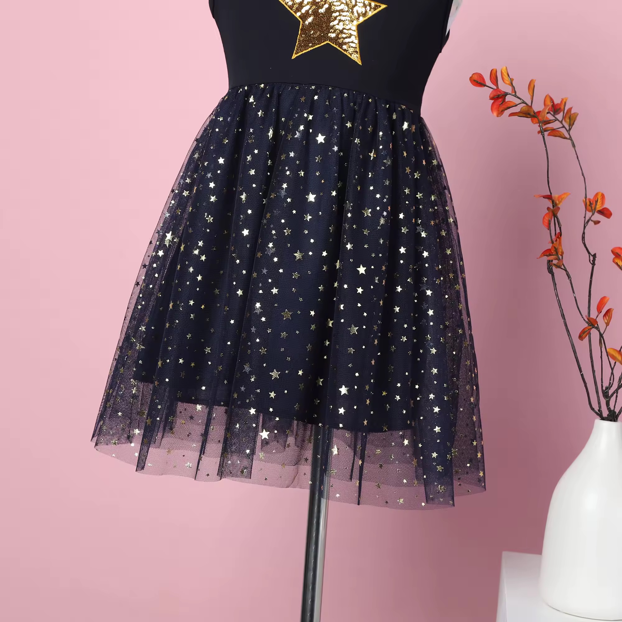 Dół na podszewce, wierzchnia warstwa tiulowa, ozdobiona ślicznymi gwiazdkami.