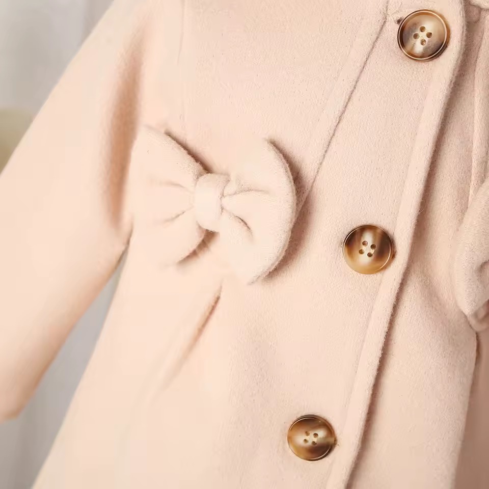 WIOSENNY PŁASZCZYK PUDROWY RÓŻ Z KOKARDKAMI / 70-110