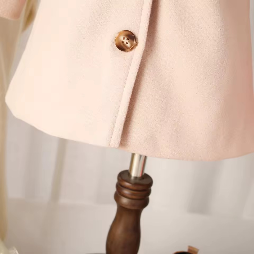 Śliczny wiosenny płaszczyk w dla dziewczynki w kolorze pudrowego różu.